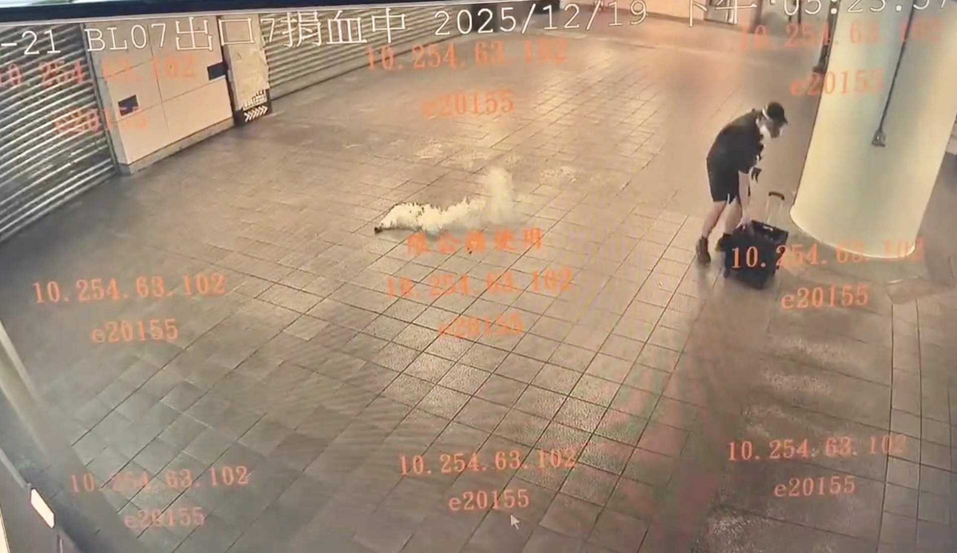 台北市19日發生隨機攻擊事件,嫌犯張文先後在台北車站及北捷中山站外投擲煙霧彈及隨機殺人。(圖/網友提供)