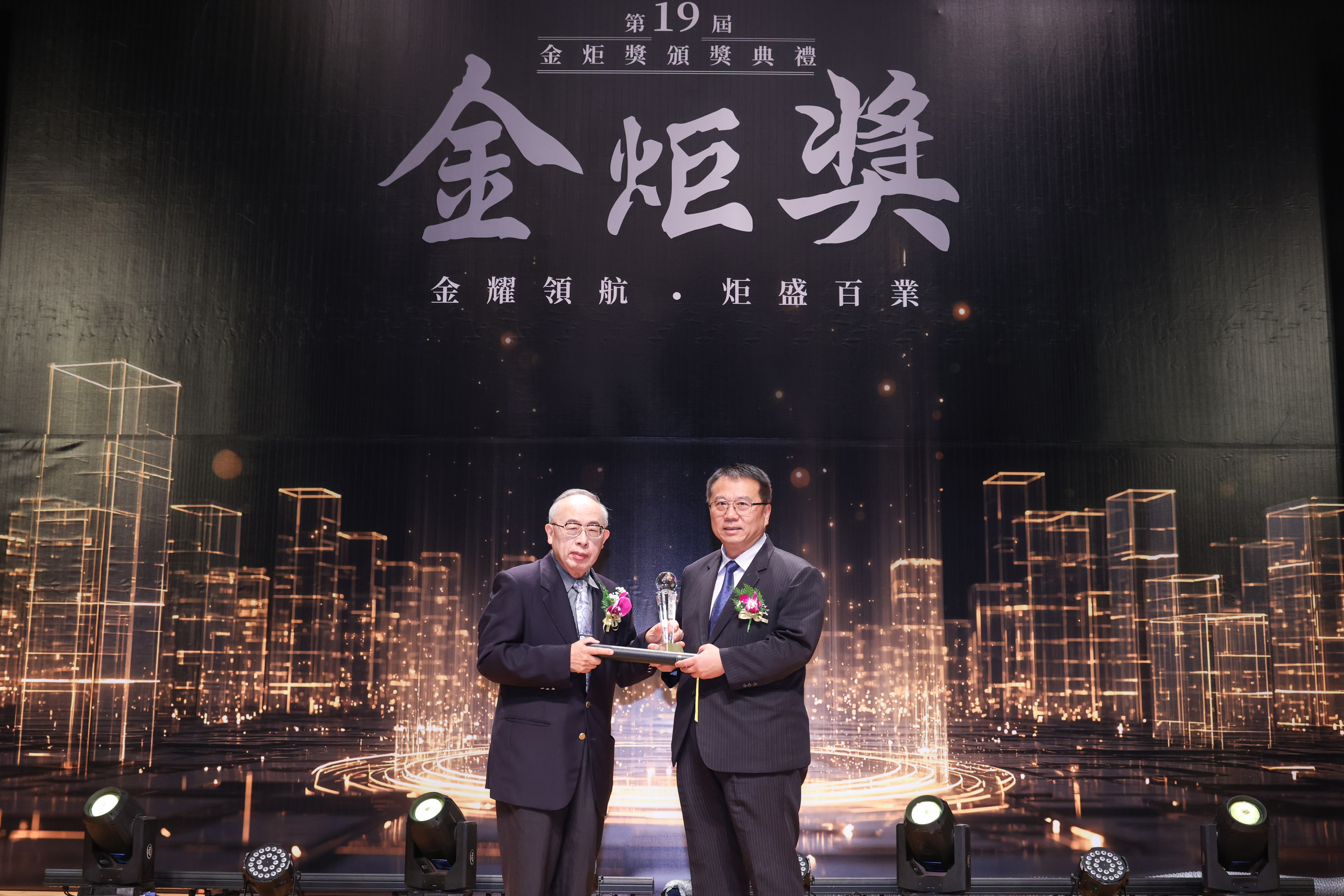 群益金鼎證券榮獲第十九金炬獎「十大績優企業」、「年度創新設計」,由總經理李文柱(右)領獎。(群益金鼎證券/提供)