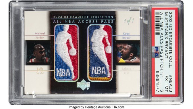 ✨ STELLAR SALE! Featuring the 2003 Upper Deck Exquisite Collection Michael Jordan/Kobe Bryant All NBA Access Pass Dual Logoman Patches 1/1, graded PSA 6, sold for $3,172,000 via Heritage Auctions on December 19th! pic.twitter.com/dCgQ3XZ42X— Cardhedger (@cardhedger) 2025年12月20日