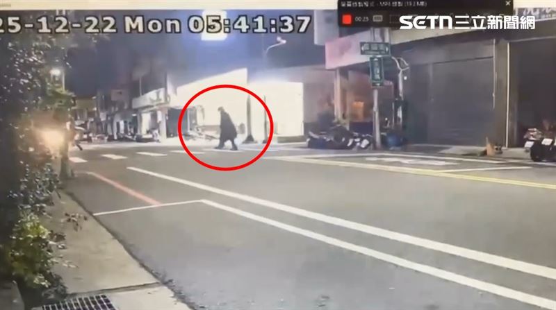 監視器拍下,今日清晨5時41分許,85歲陳姓老翁疑似外出晨運,行經光復路、自強街口,當時路口是閃燈號誌,陳翁走在斑馬線上過馬路,結果走到一半,一輛黑色轎車高速疾駛而來,撞上陳翁。