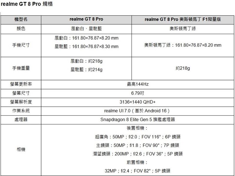 realme GT 8 Pro、realme GT 8 Pro 奧斯頓馬丁F1限量版即日起開放預購、12月26日開賣