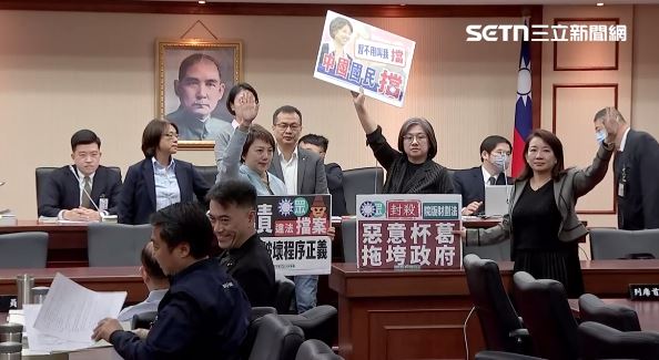 藍白立委今(23日)第4度在立院程序委員會封殺1.25兆元的《強化防衛韌性及不對稱戰力特別條例草案》。不過在表決過程中,因國民黨籍程序委員會召委翁曉玲未聽到綠委對提案表達「有異議」,意圖逕行宣布報告事項修正通過,引發綠委不滿。多位綠營立委手持抗議手牌衝上主席台敲桌高喊「有異議!有異議!有異議……」,雙方爆發激烈舌戰,現場一度吵成一團,場面火爆。