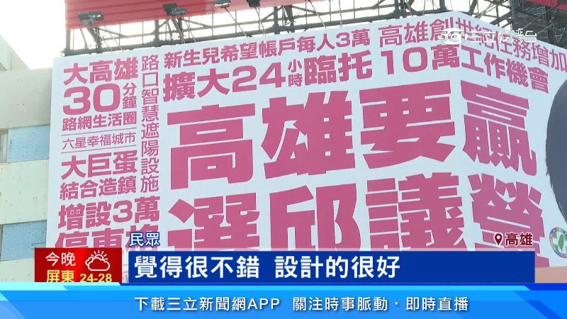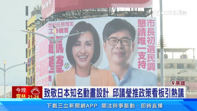 民進黨高雄市長初選,候選人各出奇招,來看邱議瑩看板設計,致敬「新世紀福音戰士」,吸引市民目光。