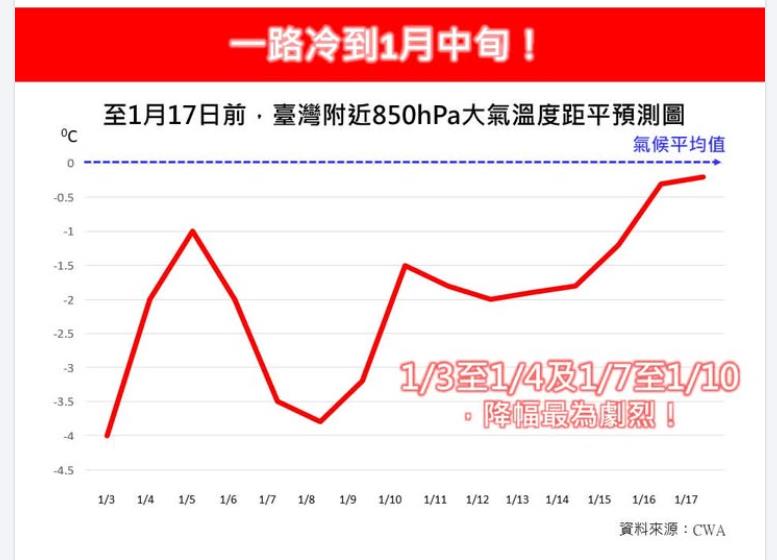氣象粉專「林老師氣象站」今天指出,要一路冷到1月中旬。