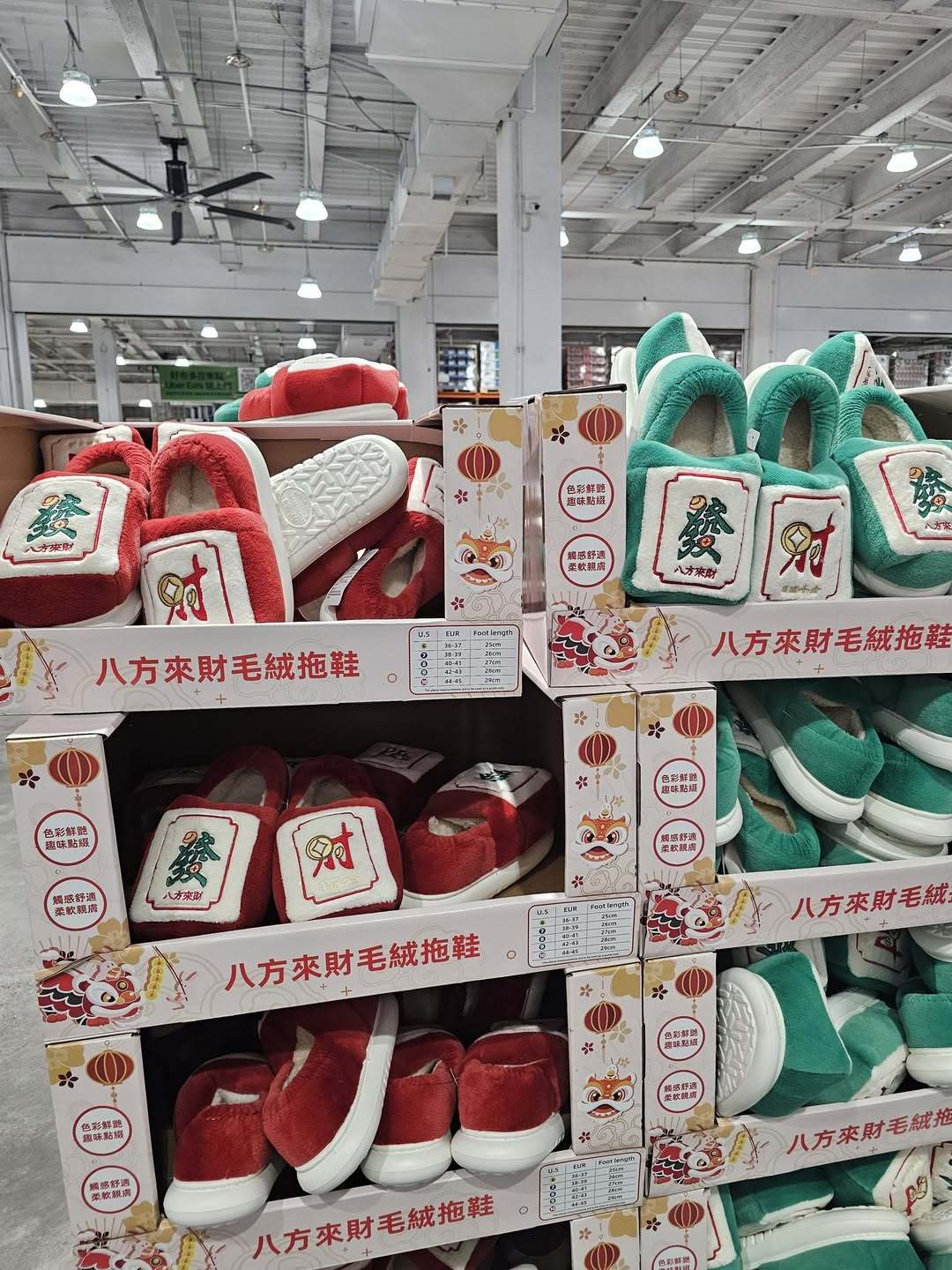 農曆春節腳步將近,不少民眾已開始添購年節用品,準備迎接新年。美式賣場好市多(Costco)除了販售日常食衣住行商品外,近期一款充滿年味的「毛絨拖鞋」意外在網路上掀起熱議。有網友逛賣場時發現,這款拖鞋設計成麻將造型,鞋面大剌剌印著「發」、「財」二字,讓他忍不住笑稱這根本是打麻將的必勝神物,穿了肯定發大財。