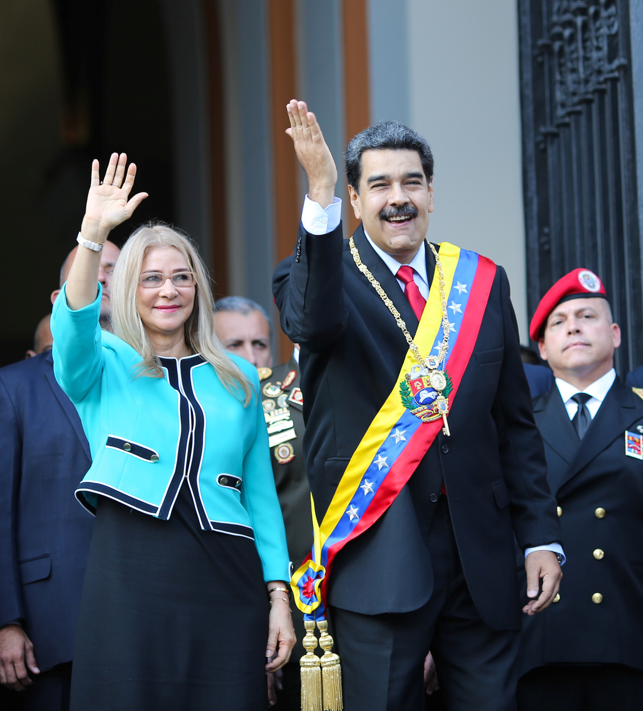 美國對委內瑞拉發動「大規模打擊」,逮捕委國總統馬杜洛及其妻子,外界擔憂中國恐以美國此舉來合理化其對台行動。圖為馬杜洛夫婦2019年出席擊敗西班牙殖民地軍隊的博亞卡戰役200周年紀念活動。 路透社