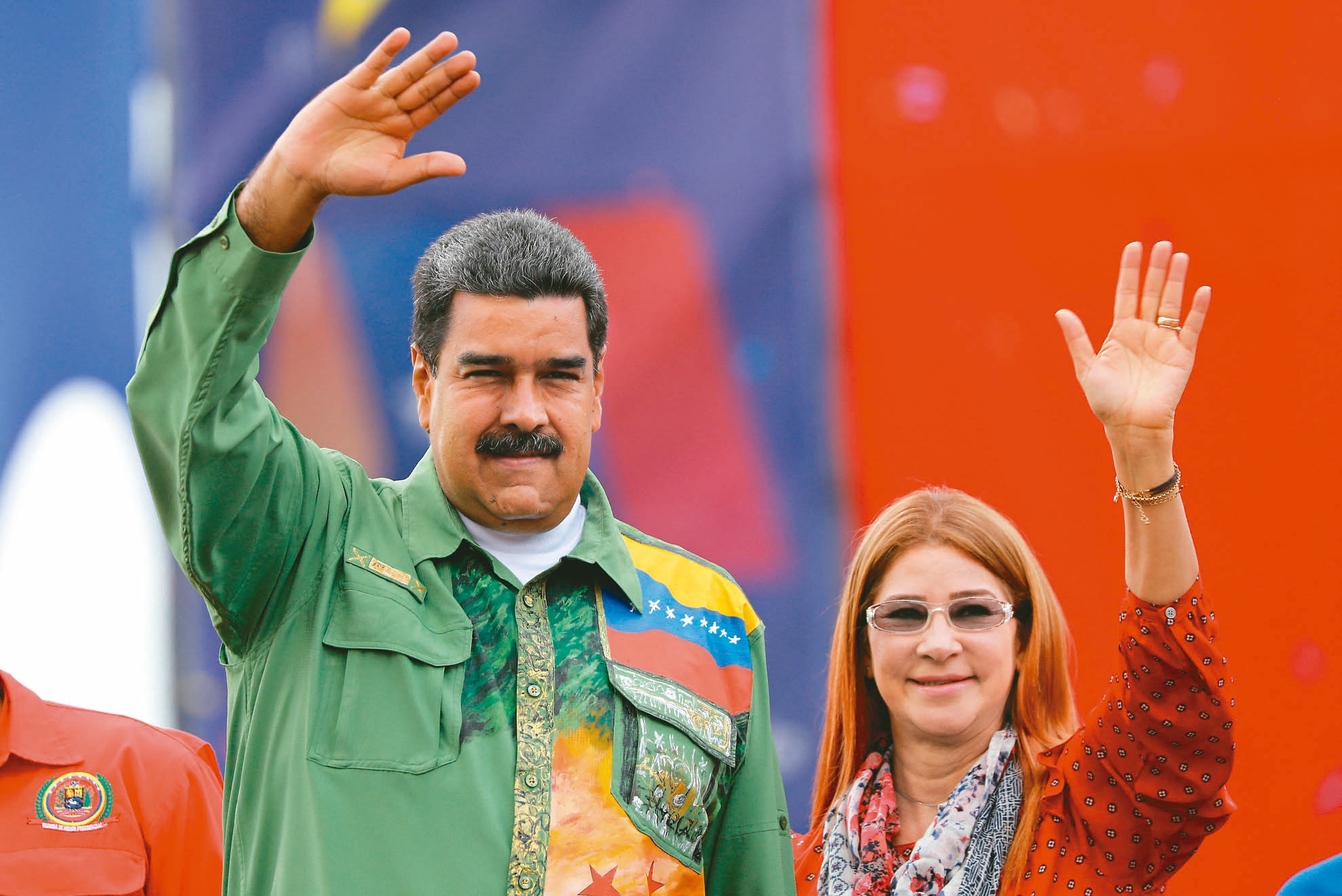 委國驚爆 委內瑞拉總統馬杜洛(左)與妻子佛羅雷斯。(路透)
