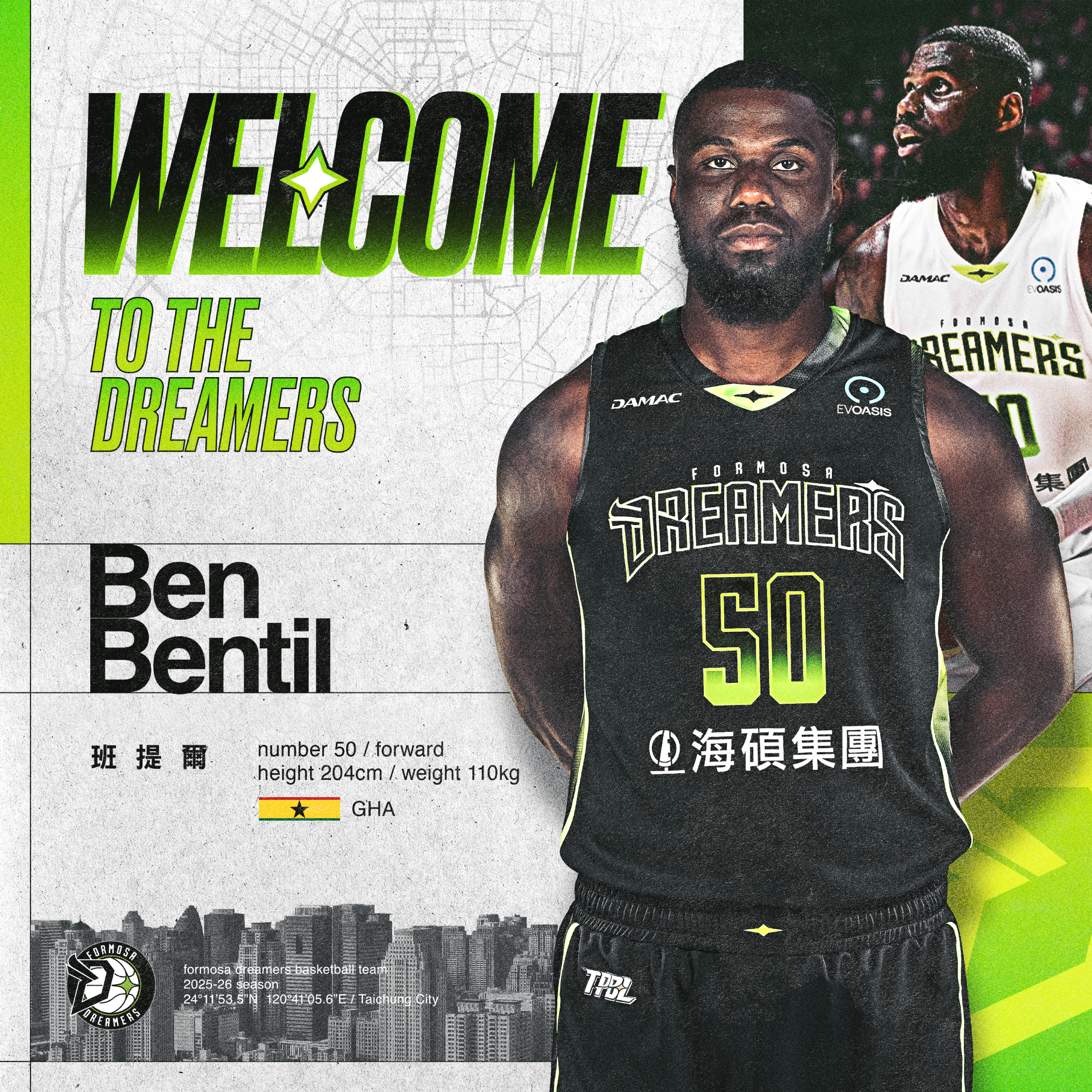 福爾摩沙夢想家隊今天正式宣布,簽下擁有NBA資歷的新外援班・班提爾(Ben Bentil),強化球隊陣容。