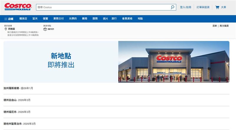 然而,根據好市多總公司日前公布的最新展店規劃顯示,2026年第1季(1月至3月)預計開幕的4間分店全數位於美國本土,包含加州西羅斯維爾(W Roseville, CA)、德州自由山(Libery Hill, TX)、德州福尼市(Forney, TX)及猶他州聖喬治(S St George, UT)。此外,將在3月新開1間商業配送中心,地點為佛羅里達州聖露西港(Port St. Lucie, FL)。