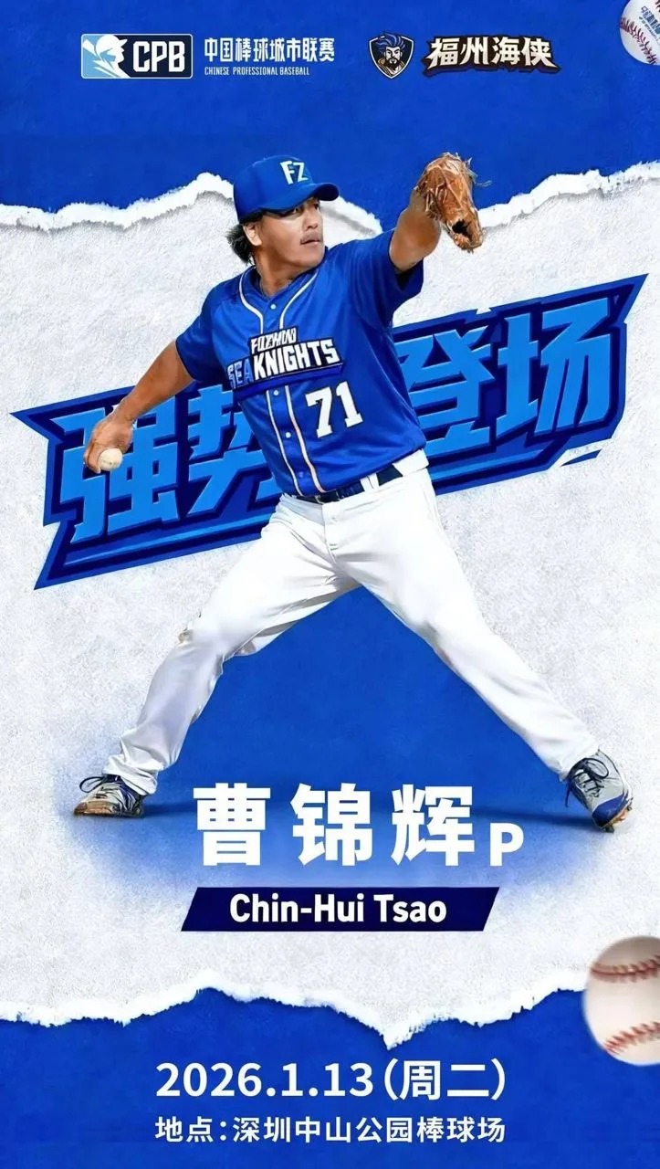 隨著曹錦輝確定披掛上陣,1月13日對上廈門海豚之戰,勢必成為中國城市棒球聯賽本季最受矚目的焦點之一,也讓外界關注這位曾站上大聯盟舞台的台灣投手,能否在全新賽場再寫話題篇章。
