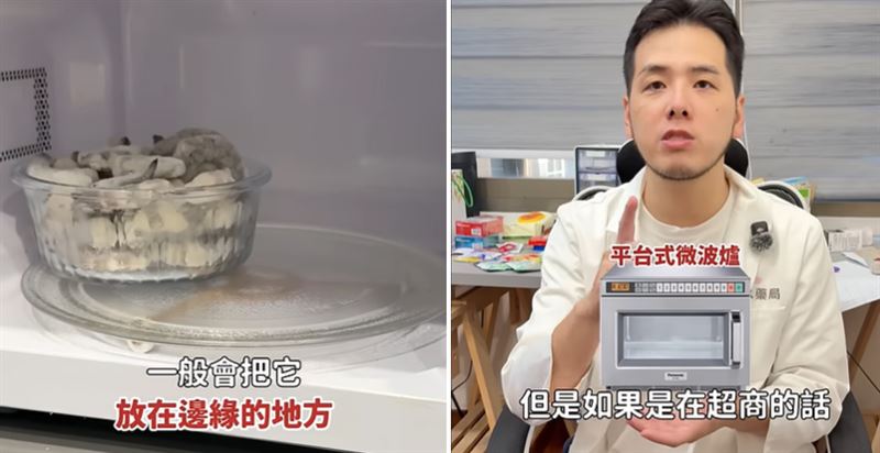 何峻宇解釋,一般家用的「轉盤式微波爐」,微波發射器通常位於側邊,將食物置於轉盤邊緣,隨著轉動能讓食物穿梭在微波密集區,受熱更均勻;反之若放在死氣沉沉的正中心,加熱效率反而大打折扣。不過藥師也補充,若是超商常見的「平台式微波爐」,因微波是從下方發射,攪拌器在底部旋轉,這時將食物放在「正中央」才是正確做法。