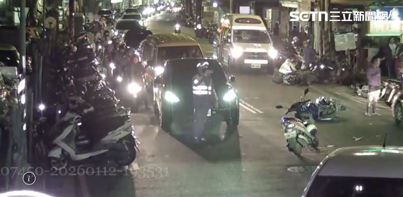 根據警方調查及監視器畫面顯示,昨日下午 5 時許,21 歲的倪男駕駛普重機行經民享街欲左轉進入 89 巷時,正巧 42 歲的葉男與 52 歲的辛男(C車)正沿民享街往中山路方向直行。雙方在路口發生強力碰撞,辛男的機車倒地後更因慣性作用,再撞上邱姓女子停放在路邊機車格內的機車。