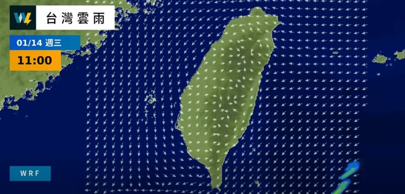 林孝儒表示,週二至週四期間臺灣環境都較偏乾,預測各地以晴時多雲天氣為主;而週五至週末則隨東北季風水氣逐漸影響,屆時東部或至大臺北及北部山區則陸續轉陰有短暫陣雨天氣,天氣型態再稍有變化。