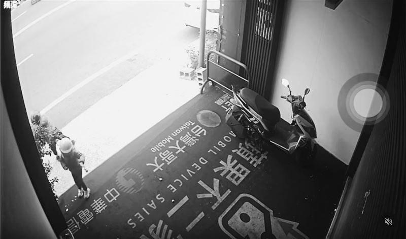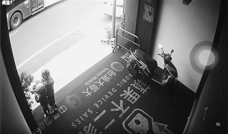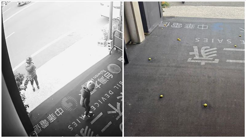 2名頭戴安全帽的小朋友,被監視器拍下搗蛋實錄,只見他們摘下門口盆栽的金桔,其中一個主要朝內部騎樓猛攻,將果實放在地上踩,另一個則鎖定外部攻擊,在門口搗蛋爆桔,不時朝馬路扔擲金桔,期間皆未看見家長出現制止。