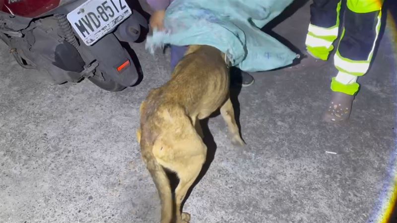 台灣新聞通訊社-「路邊綁狗」裝麻布袋!車上還有米酒…路人急報案 阿北被攔全說了