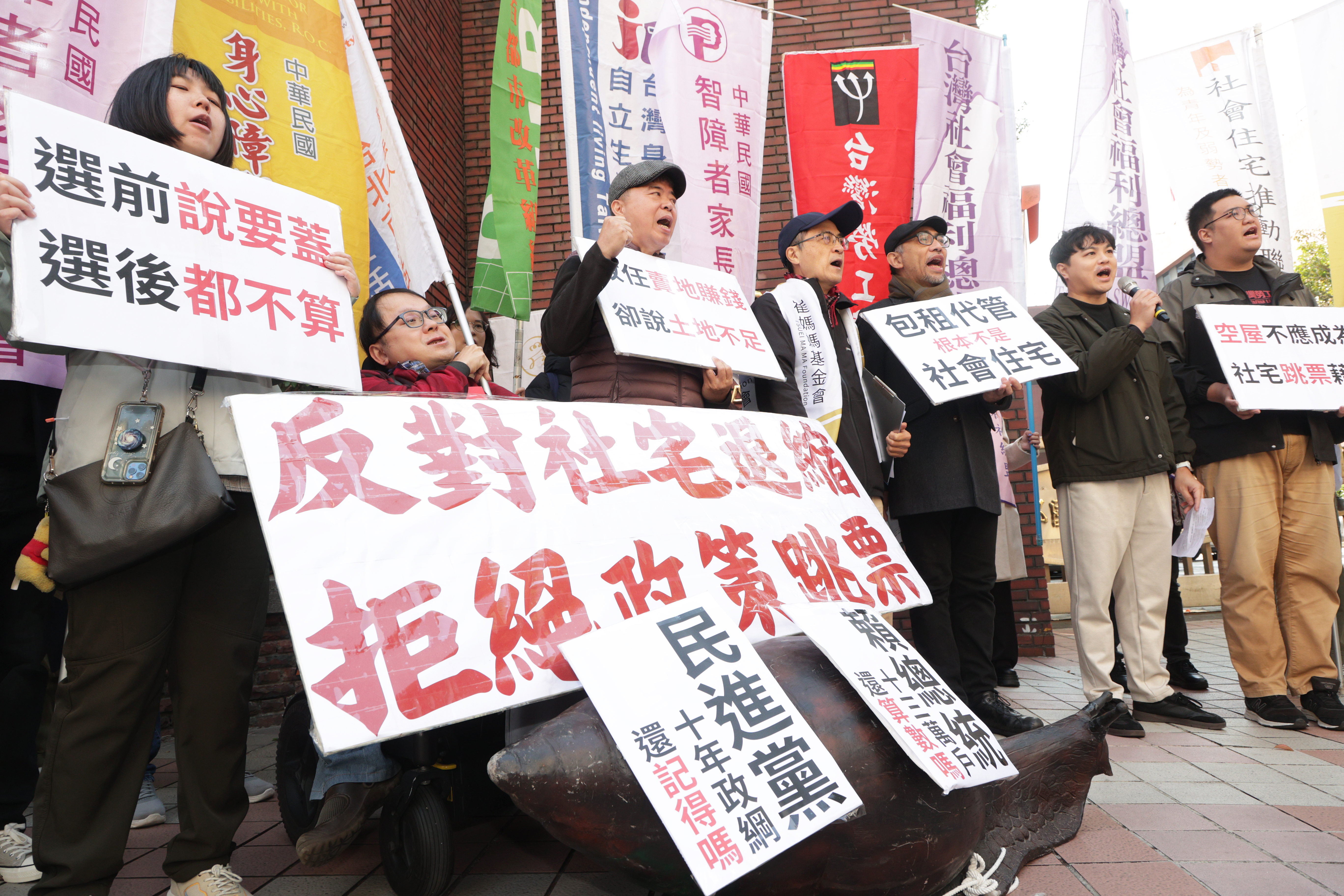賴清德總統社宅政見跳票,社宅推動聯盟、崔媽媽基金會等11個民團今天到國土署抗議,堅決反對興建社會住宅目標從13萬戶一口氣縮減至4萬戶。記者潘俊宏/攝影