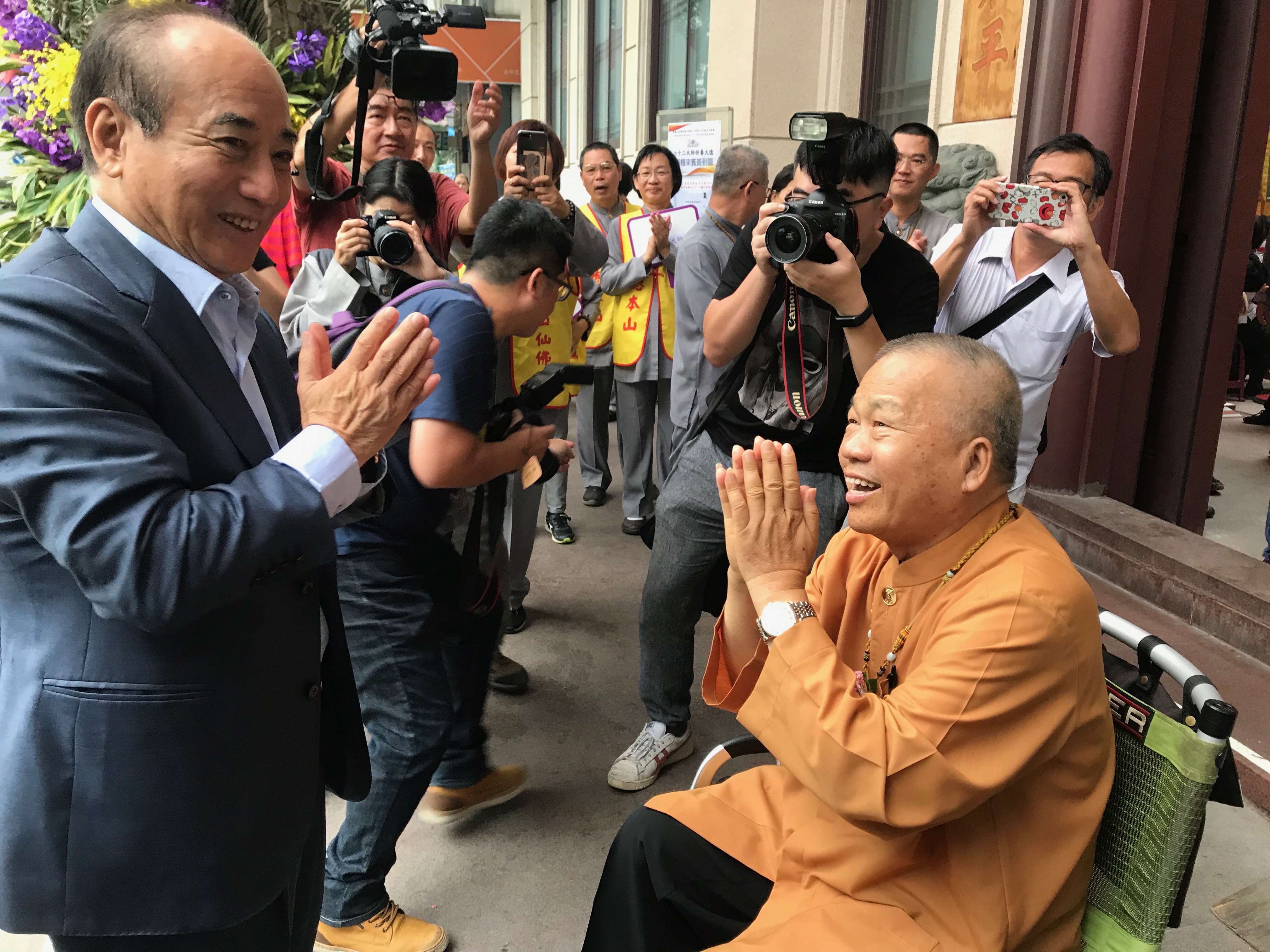 混元禪師近年健康狀況不佳,立法院前院長王金平參加仙佛寺台中道場活動,與混元禪師會面。圖/本報資料照片