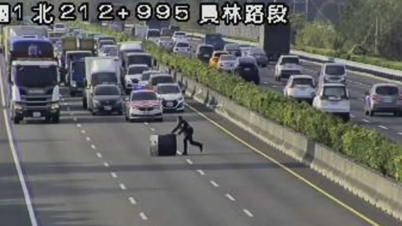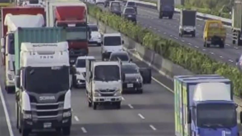 台灣新聞通訊社-國道驚見「大咖塑膠桶」!聯結車閃避不及撞上釀禍 警逮元凶開罰