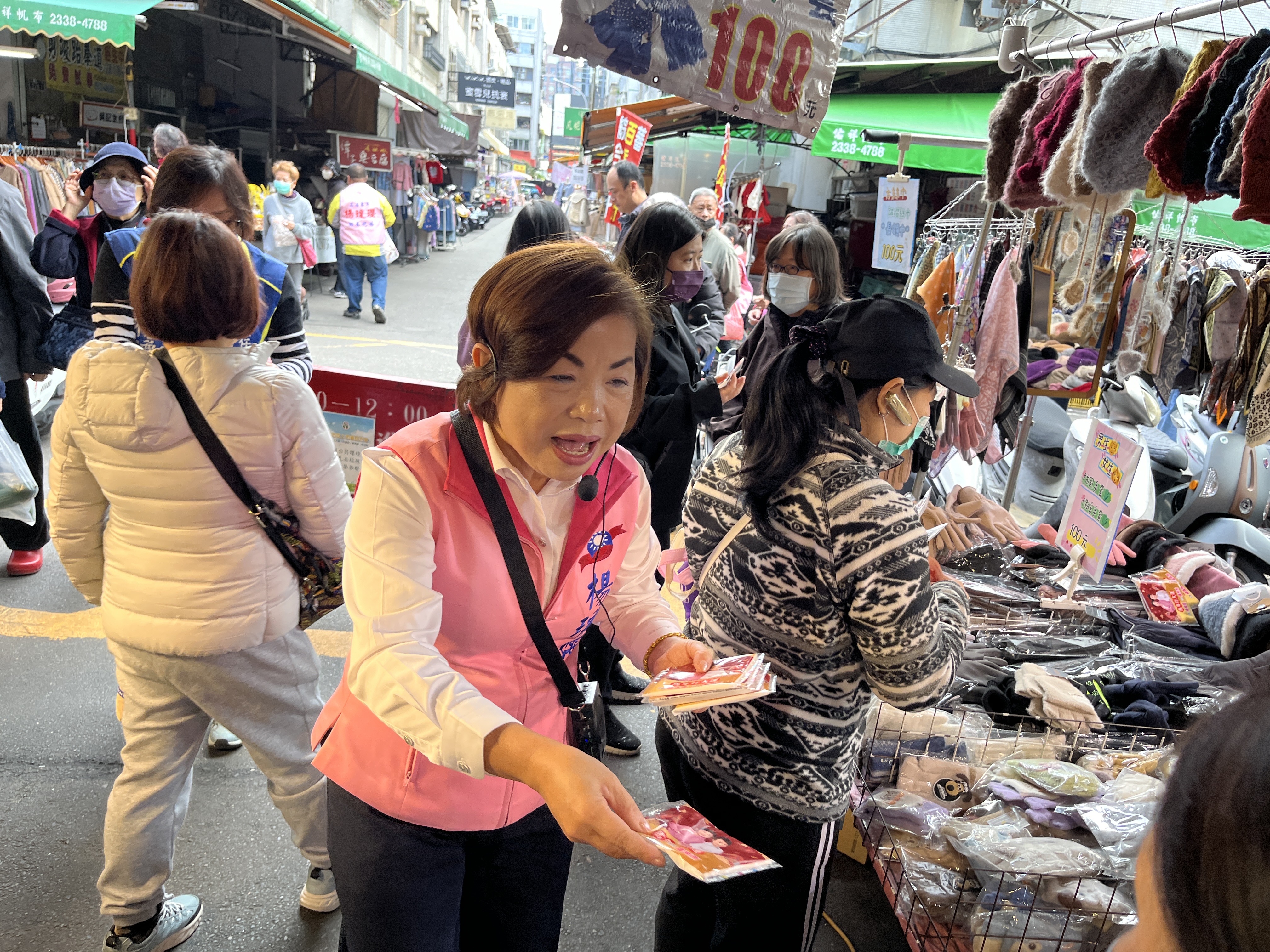 楊瓊瓔今天上午跨區前往西區向上市場掃街拜票,向市民懇託支持她代表國民黨參選台中市長。儘管向上市場並非她的立委選區,但行程一曝光,仍吸引不少支持者到場力挺,市場氣氛熱絡,沿途不時傳出「凍蒜」、「市長好」的加油聲,展現高人氣。