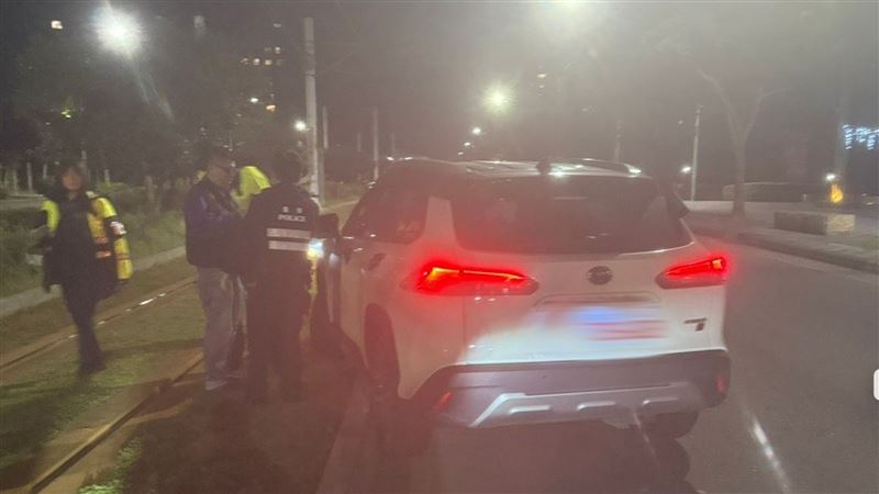 警方獲報到場時發現,周男駕駛的休旅車左前輪卡於軌道緣石且受損爆胎,現場無人受傷,隨即聯繫民間拖吊業者協助排除,並同步通報捷運警察分隊及輕軌公司進行行車監控與調度,確保軌道運行安全。