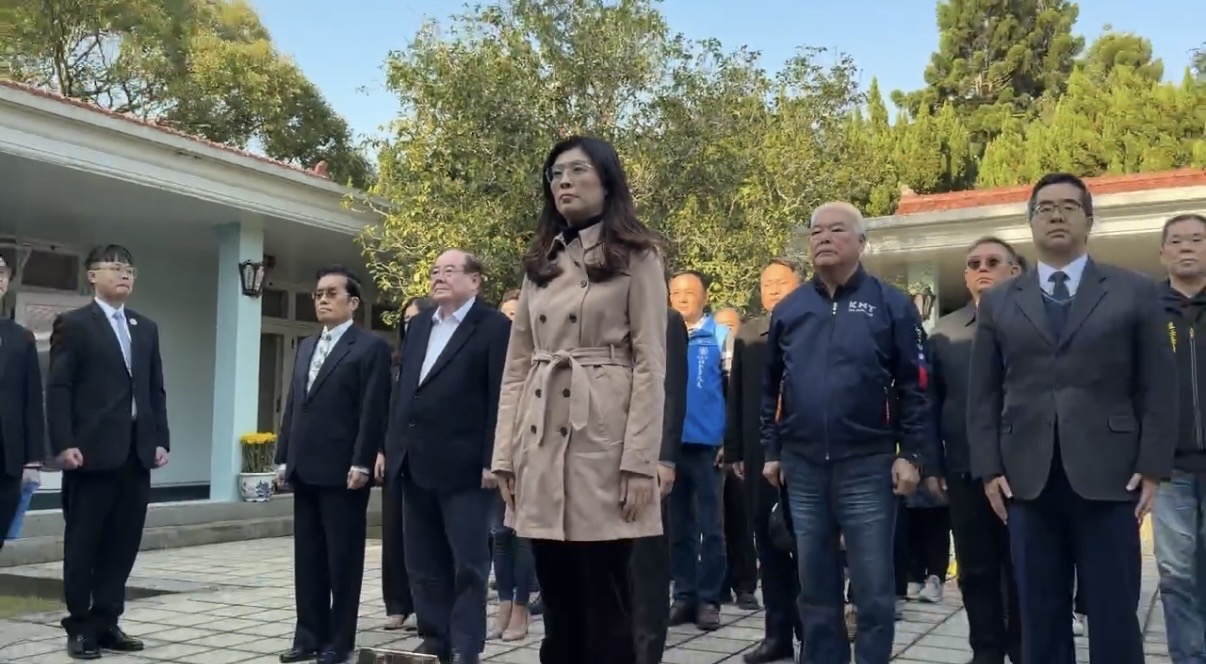 今為前總統蔣經國逝世38周年,國民黨黨主席鄭麗文上午率黨內官員前往桃園大溪區頭寮陵寢追思,獻花三鞠躬致意。記者周嘉茹/攝影