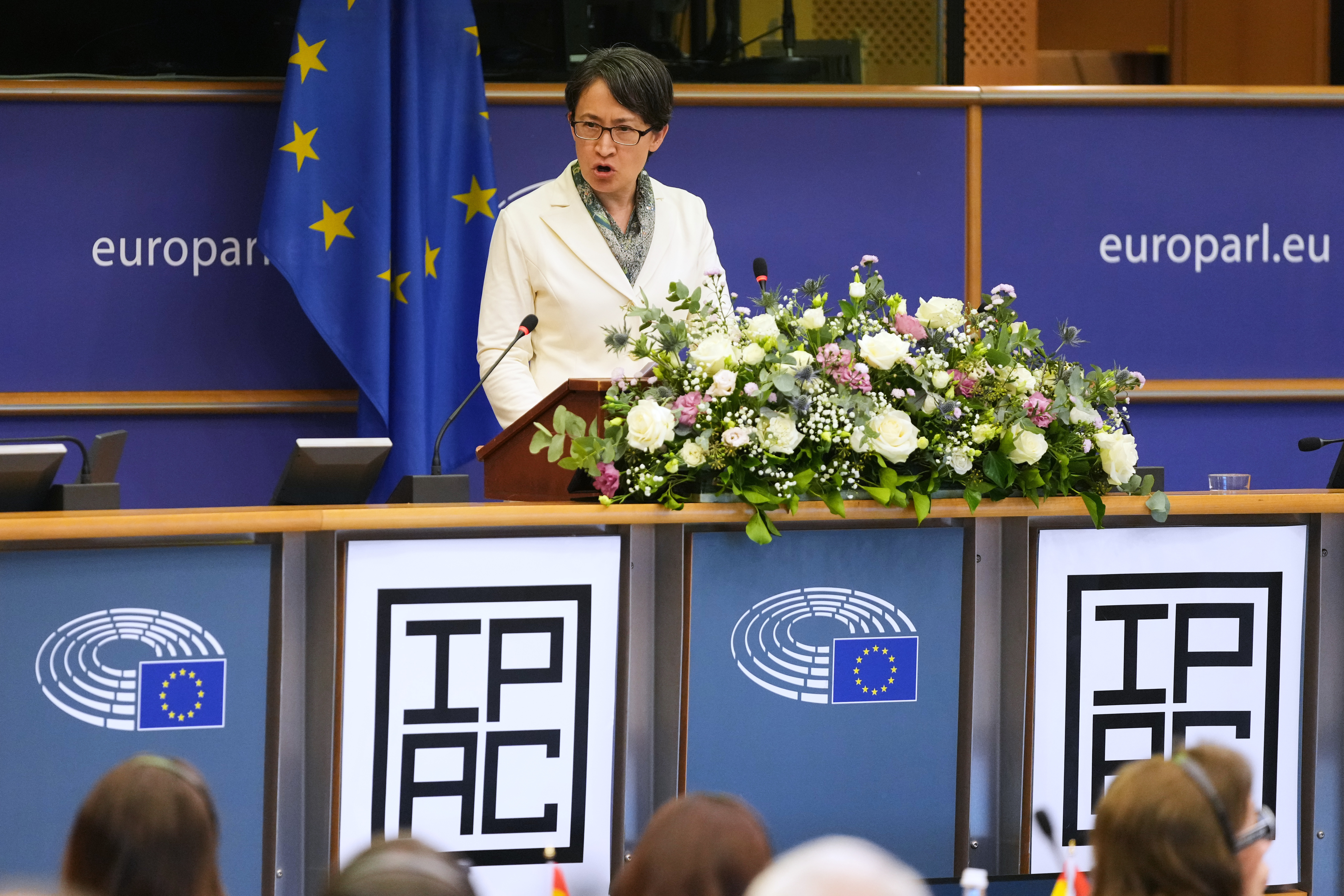 副總統蕭美琴2025年11月7日在布魯塞爾的歐洲議會出席活動並發表演講。美聯社