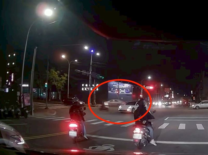 整個事故瞬間,都被一旁停等紅燈的汽車行車記錄器拍下,當下網友只聽到「砰」一聲,經過路口時才驚覺事態嚴重,嘴裡不停喊著「希望平安」,並協助報警。