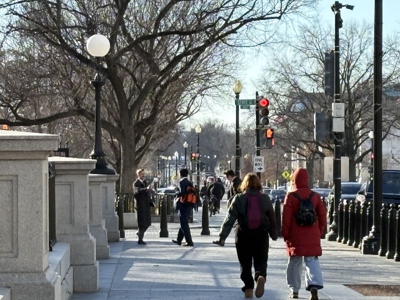 一行人於下午1時趕赴美國在台協會(AIT)位於維吉尼亞州的總部,國務院中國與台灣議題研究員莊宛樺(Jessica Drun)等人現身同棟大樓。