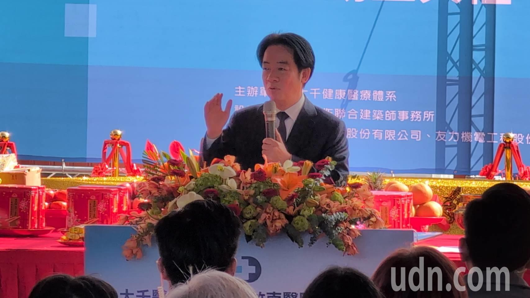 賴清德昨天出席苗栗縣大千健康醫療體系竹南醫院動土典禮,他強調中央對苗栗的支持不遺餘力,從前總統蔡英文到他任內,中央給苗栗的總經費達2187億,幫助苗栗走出財政困境,並提及前縣長徐耀昌對於這段過程清楚。賴說,每次到苗栗,徐耀昌一定前去歡迎,在耳邊講還缺什麼;他話鋒一轉,向台下的鍾東錦喊話「鍾縣長要學一下啦,你都沒有跟我咬耳朵」。
