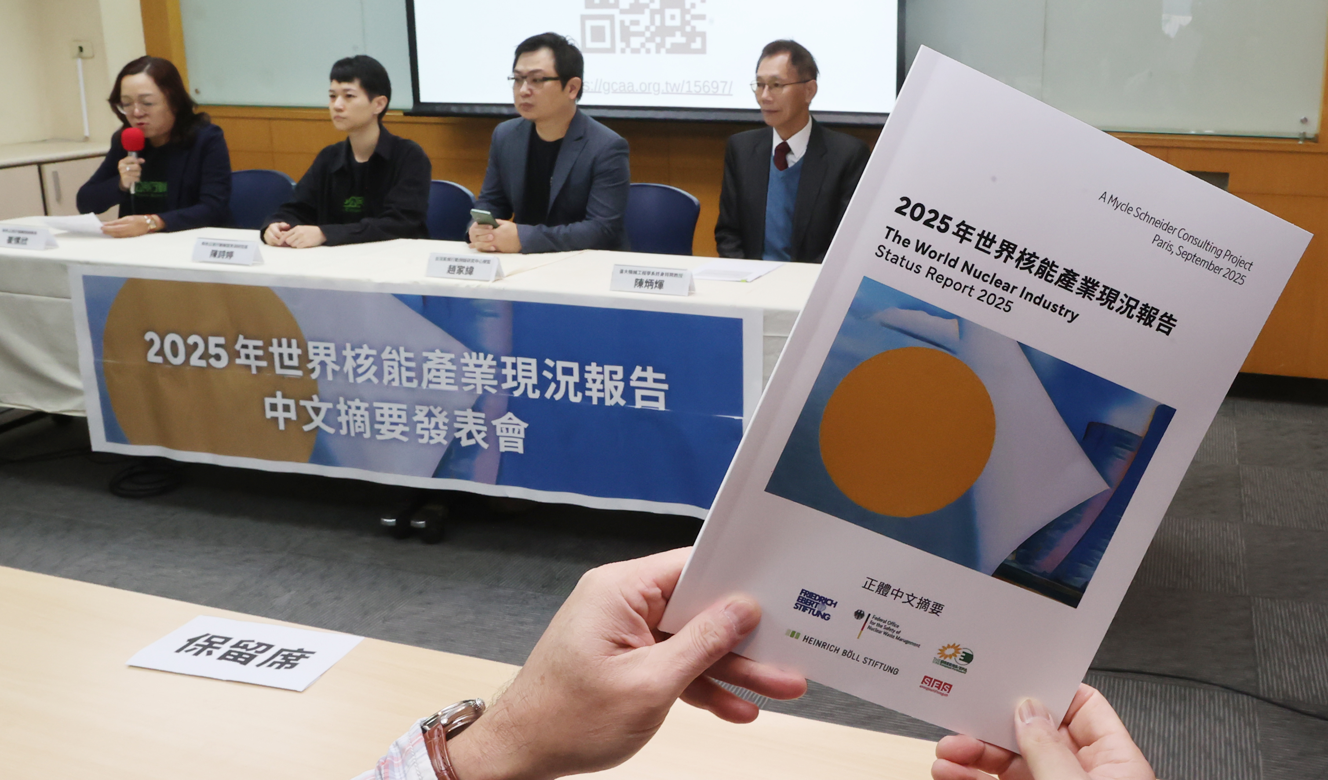 綠色公民行動聯盟、台灣氣候行動網絡研究中心等今召開記者會,評析全球核電發展趨勢的權威年度報告《2025世界核能產業現況報告》。學者表示,台灣當前的政治環境不利徹底淘汰核能,但全球核電占比已降至8.8%,核電已是全球電力結構永遠的配角。