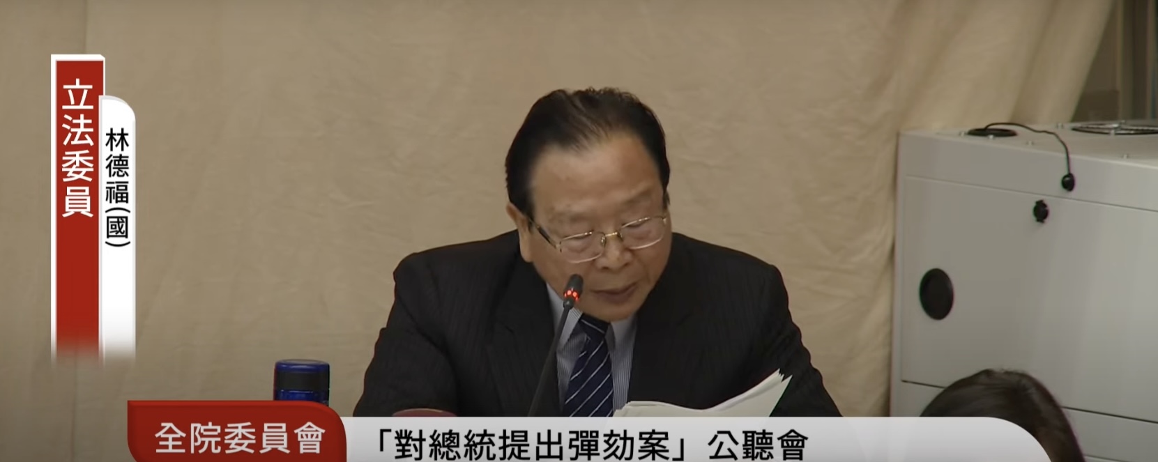 林德福今出席賴總統彈劾案全院委員會公聽會,發表意見。他說,民主國家的總統應是憲政秩序的守門人,非「公親變事主」,親自下場主導政治對立,撕裂台灣社會。不管是立法院、行政院,院際之間有任何解不開的,站在總統的高度,應以客觀中道的立場解決,但賴總統卻與行政院長卓榮泰合作。據憲法第48條,總統就職宣誓,如違誓言,願受國家嚴厲制裁。2024大選結束後,總統上任以來,人民期待的是全民總統,希望經濟提升、兩岸和平,從政的人清廉,但看到的是鬥雞總統,今天台灣憲政困局不是一天造成的,而是賴總統策畫的「焦土戰略」。