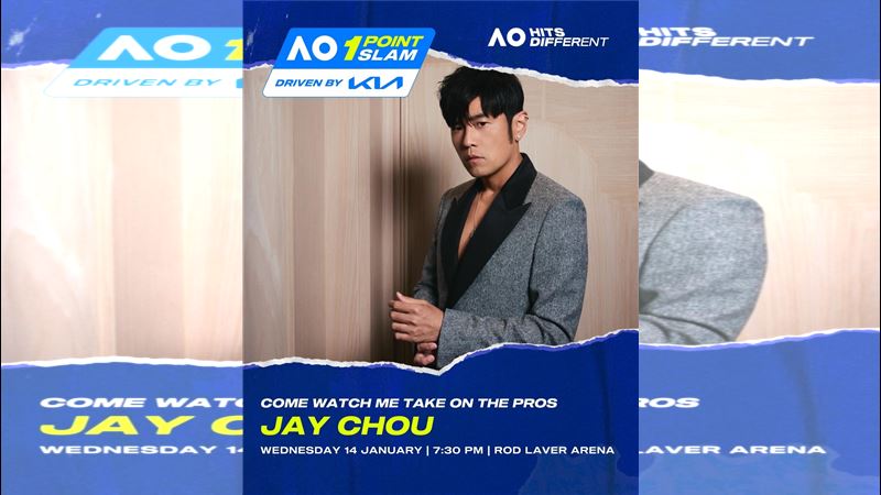 「亞洲天王」周杰倫參加澳網1分大滿貫(One Point Slam)在賽前猜拳輸掉,正式比賽連球都沒碰到就被淘汰出局。