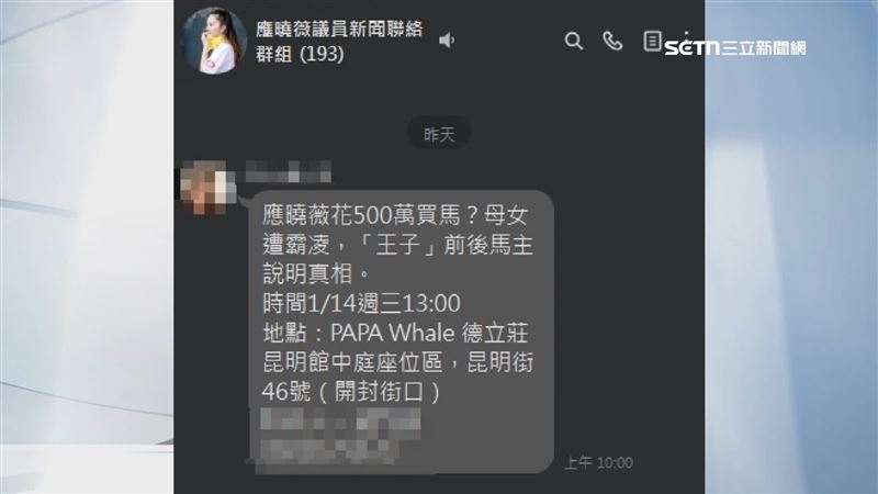 深陷京華城弊案的北市議員應曉薇,一審將在3/26宣判,不過應曉薇過去曾養過一匹馬叫「王子」,傳出她是花500萬買馬,今(14)日應曉薇群組發出通知,找「王子」的前飼主出面澄清,應曉薇沒有花500萬買馬,只是跟朋友合資50萬一起養,就被法界人士質疑,是為了幫自己洗白,轉移官司焦點。