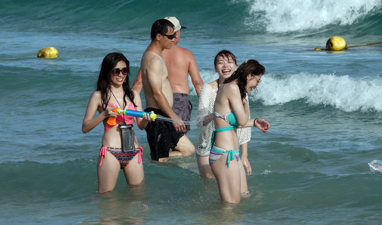 圖為墾丁沙灘戲水人潮。聯合報系資料照/記者劉學聖攝影