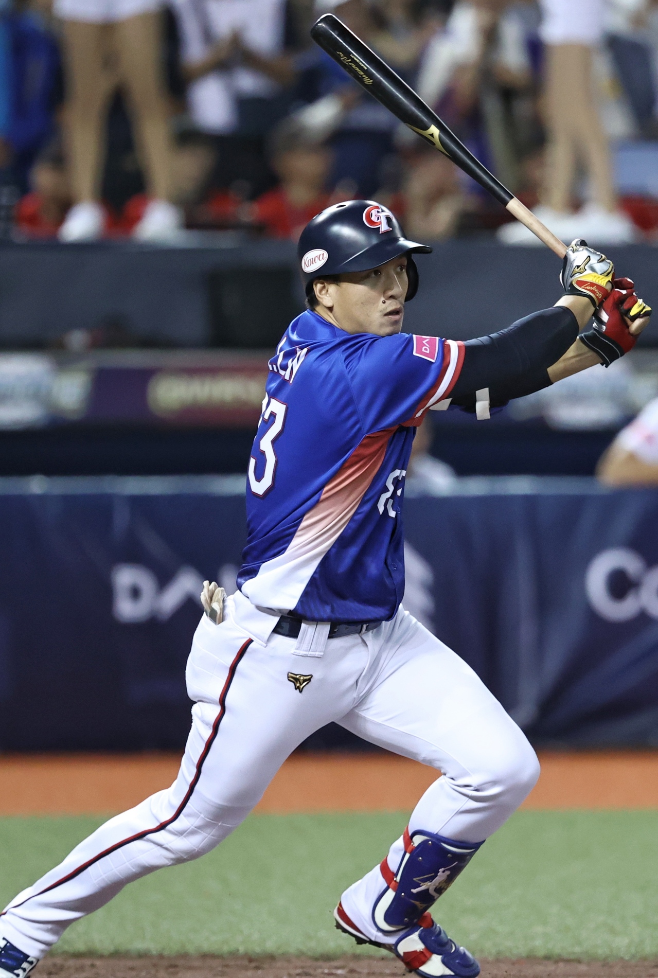 中華隊林立在七局上擊出三分砲。記者侯永全/攝影 侯永全