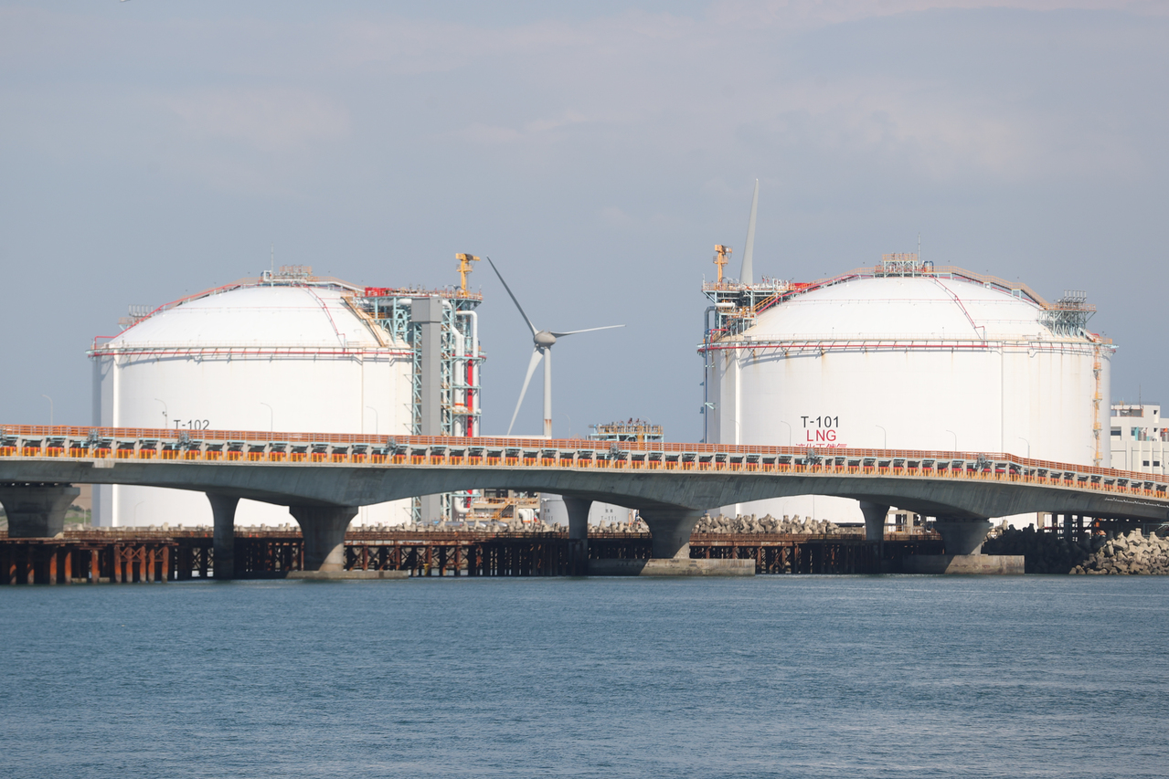 台灣中油公司今天宣布,2月電業、工業及民生用戶天然氣價格均不予調整。圖為觀塘廠LNG儲槽。圖/本報資料照片