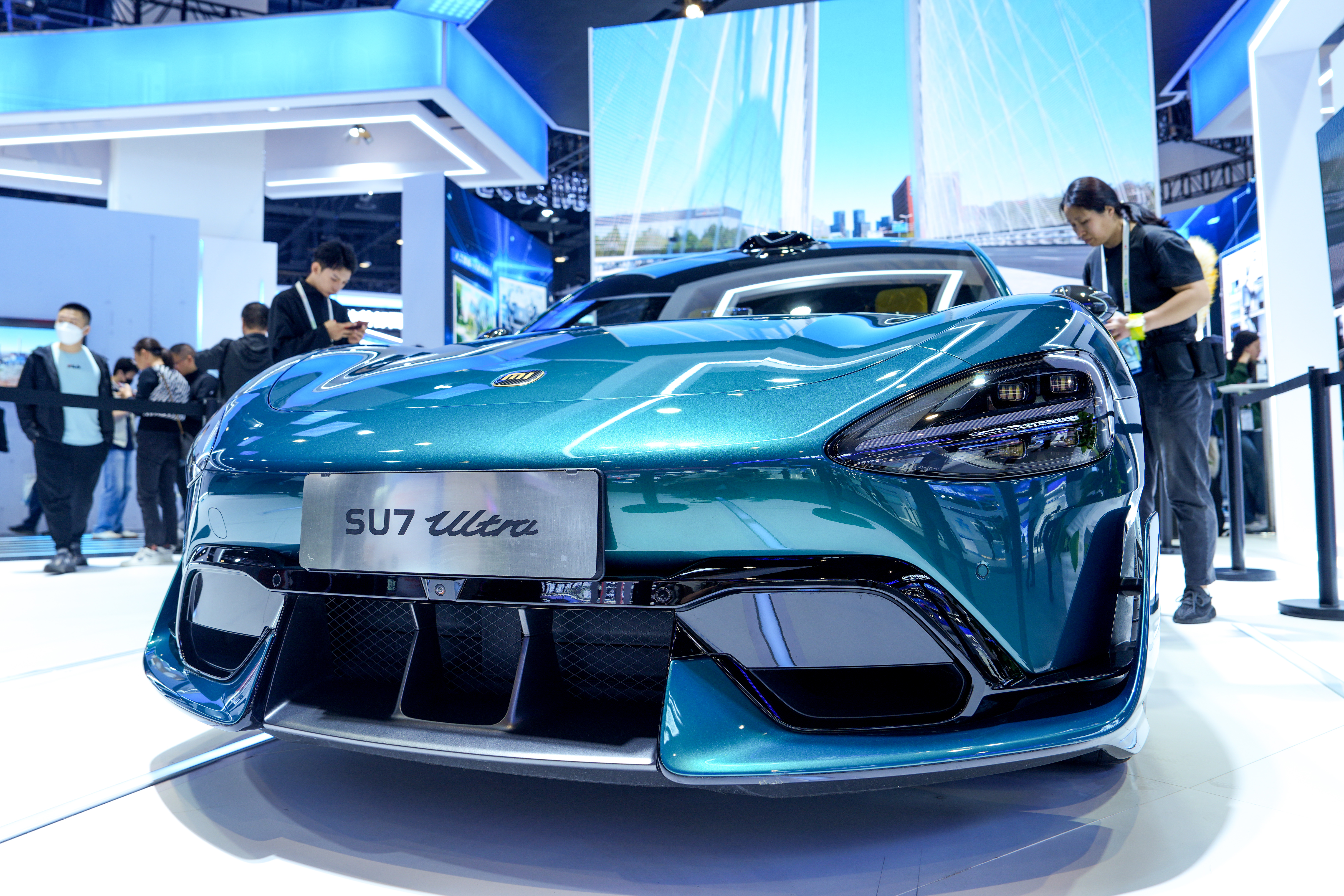 曾經月銷量上千輛的「地表最速」四門車小米SU7 Ultra,如今銷量正逐漸下滑。根據懂車帝等平台數據,2025年12月小米SU7 Ultra銷量僅為45輛。先前銷量最高的月份為3月,賣出3,101輛。,圖為在北京展出的SU7 Ultra汽車。( 中新社)