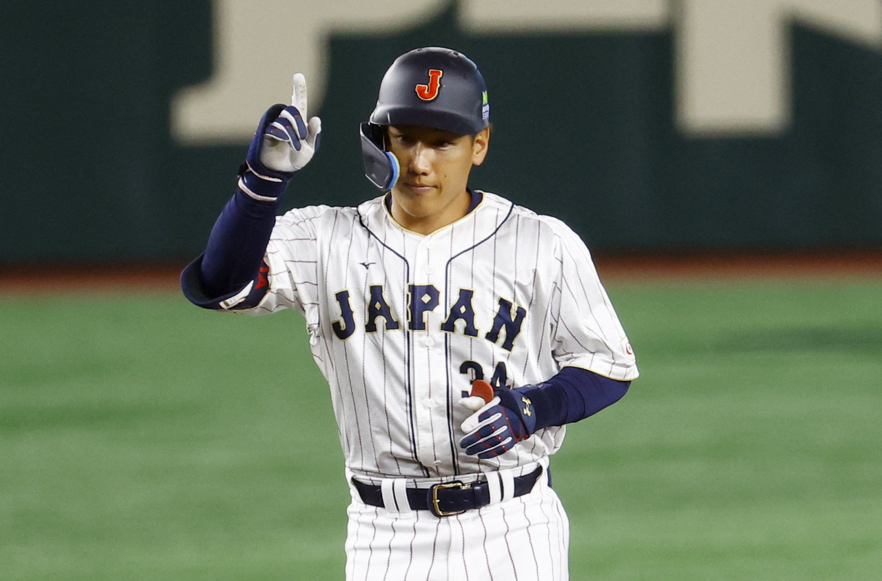 內野手:村上宗隆(白襪)、小園海斗(廣島)、岡本和真(藍鳥)、牧原大成(軟銀)、源田壯亮(西武)、牧秀悟(橫濱)、佐藤輝明(阪神)。