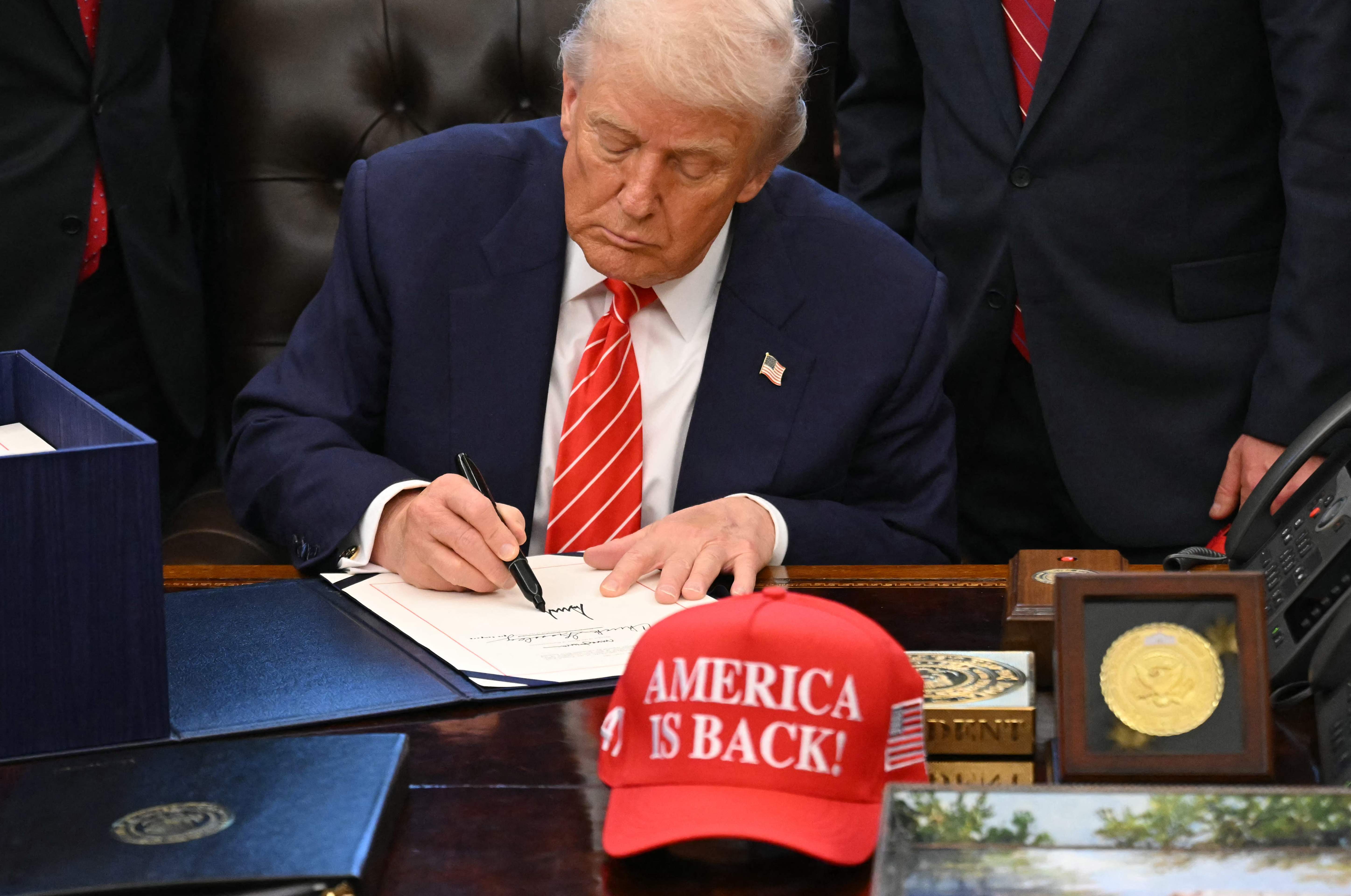 美國總統川普2月3日在白宮橢圓辦公室簽署撥款法案,結束聯邦政府局部停擺。法新社