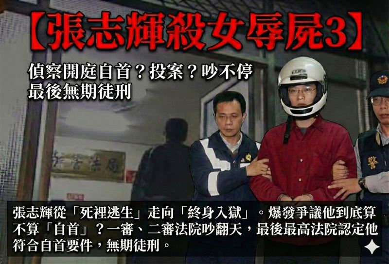 張志輝「自首」認定爆發爭議戰 一審、二審吵翻天張志輝情殺案進入司法程序後,最大爭議焦點浮現—張志輝,到底算不算自首?檢方主張,他是在案情曝光、警方掌握人車位置後,才進入刑事局,已不符合「主動投案」精神,最多只能算投案,因此求處死刑。一審法院則持不同看法。法官認為,他在警方尚未完全掌握犯罪細節前,就主動聯絡媒體,坦承殺人,並配合警方到案,具備自首實質要件。因此,一審判處無期徒刑。但二審法院推翻一審判決。二審認為,張志輝先利用媒體曝光,再配合警方行動,不屬於真正悔悟,改判死刑。一、二審判決結果天差地遠,引發高度關注。