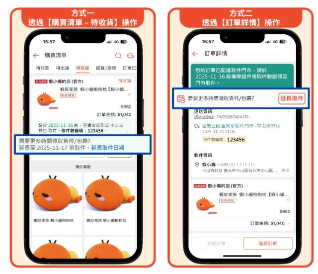 如何操作延長取件期限(以蝦皮購物App為例)?