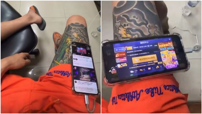 由於蔡男持毒罪證明確,後續又被上了腳銬,但蔡男完全沒在怕,再度趁員警不注意,拿手機拍下偵訊室的電腦筆錄內容,還PO網炫耀,甚至在偵訊室內玩博弈手遊,還不忘接插座幫手機充電。明明是毒品現行犯遭逮捕,卻在派出所內快樂滑手機,還無人制止,誇張行徑引發網友抨擊,質疑警方太離譜。