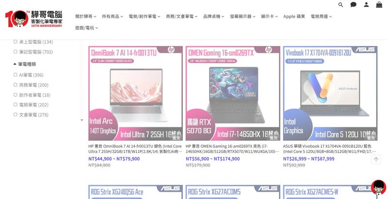 實際檢視「驊哥電腦」官方網站,過往主打的各大品牌客製化筆電已全數顯示「缺貨」或「售完」,目前架上僅存防護貼、滑鼠及防毒軟體等周邊產品。