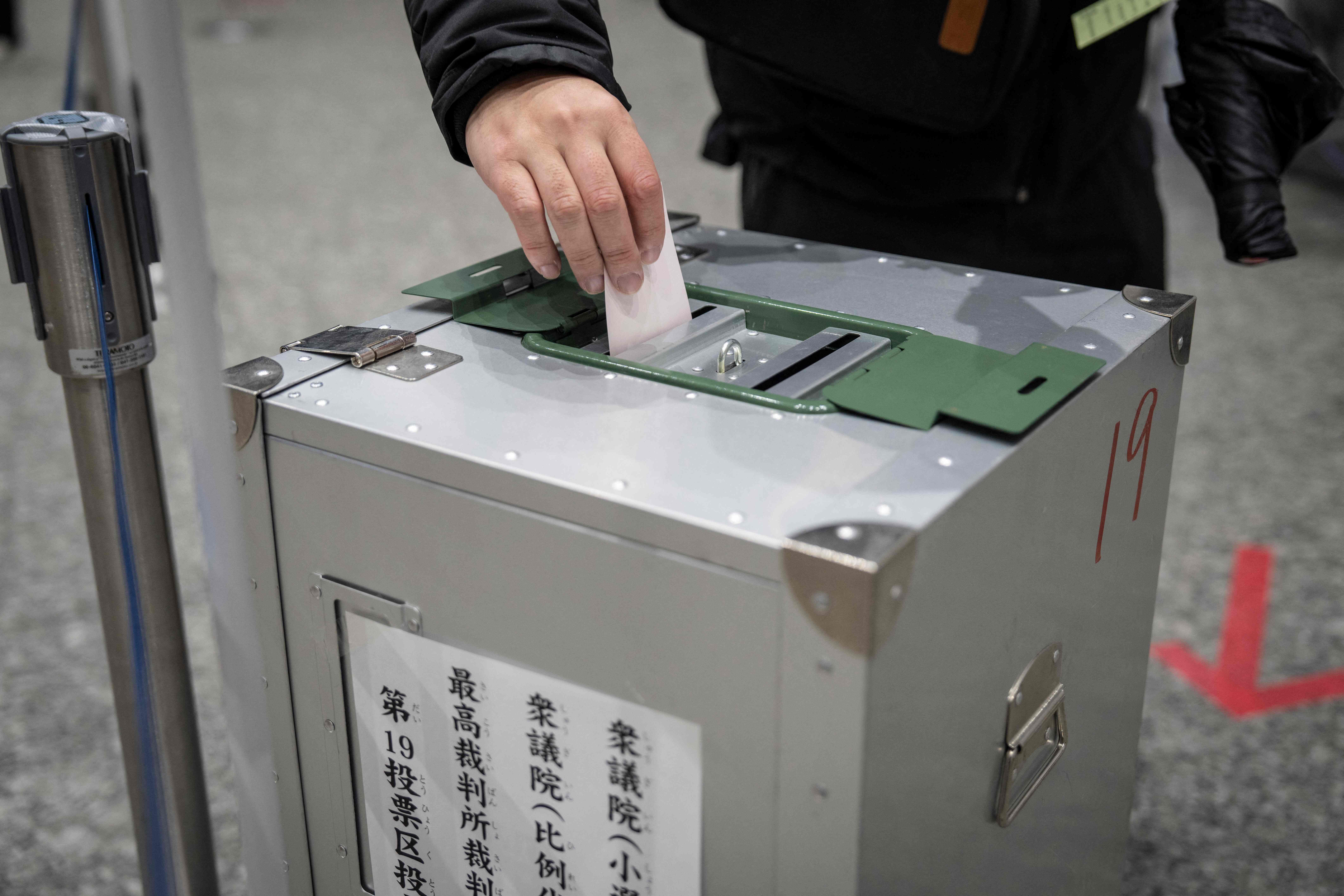日本8日舉行第51屆眾議院選舉,圖為民眾前往東京一處投票所投票。法新社