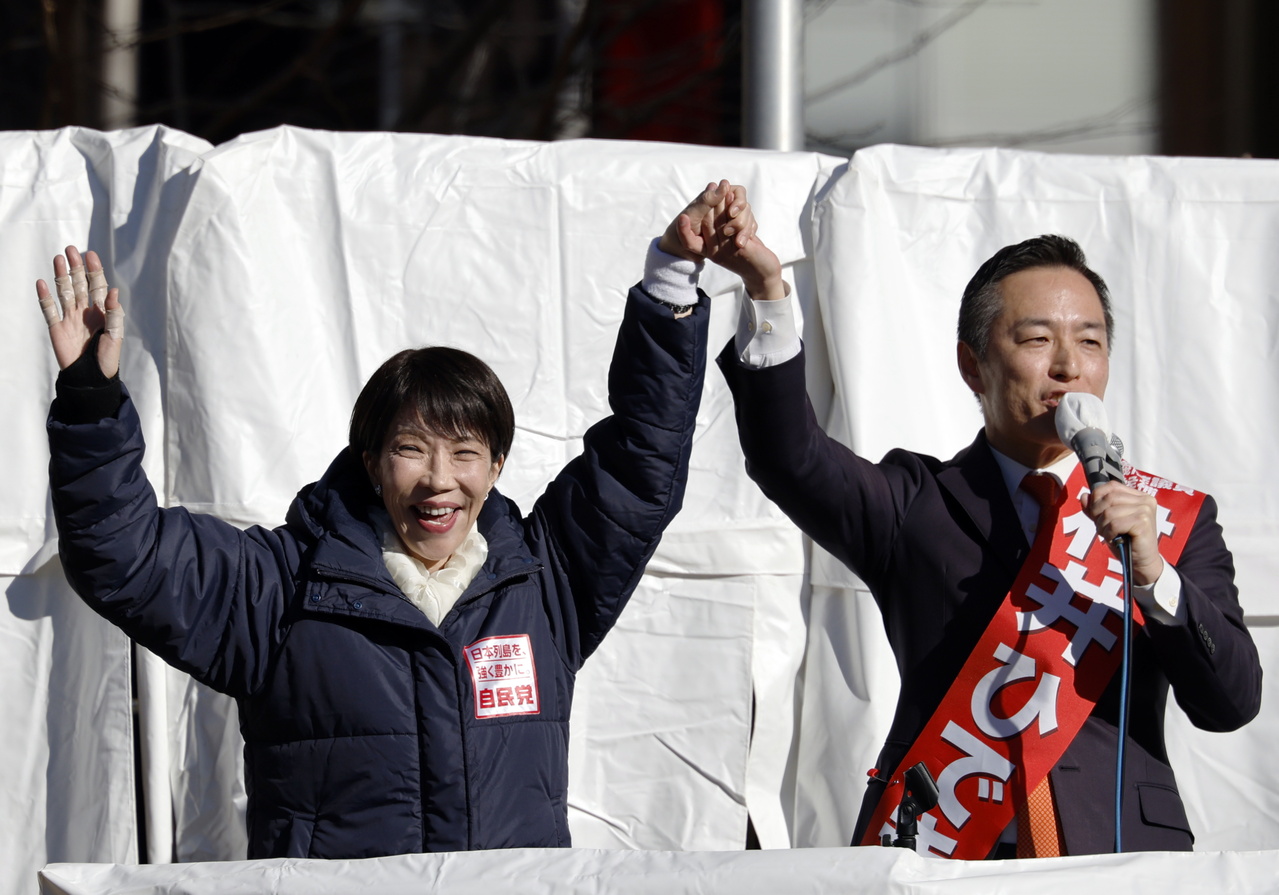 日本眾議院選舉8日投開票。圖為日本首相兼自民黨總裁高市早苗日前在東京一場競選集會上為候選人助選。 歐新社