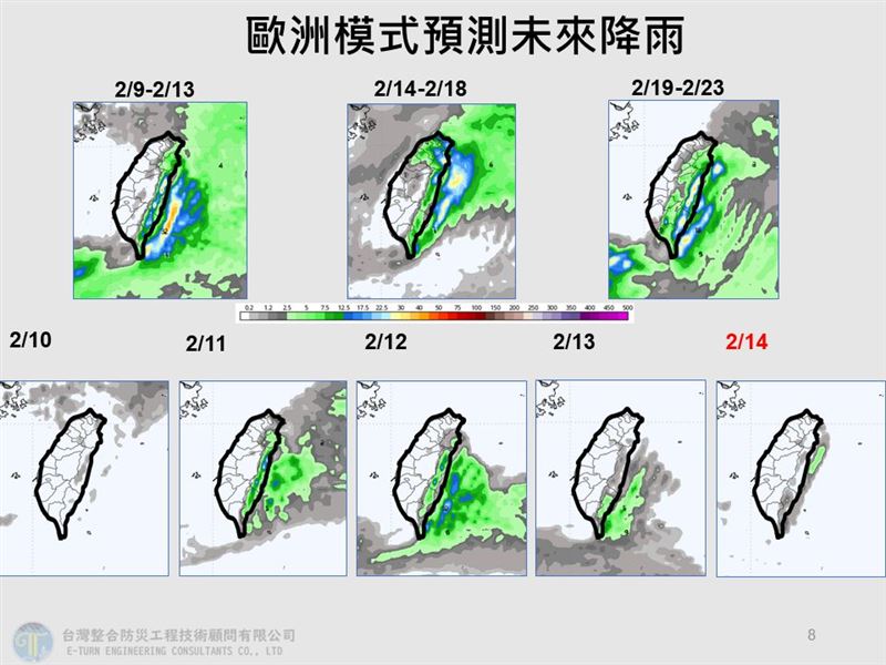 專家強調,除夕16日(週一)起的春節期間,將有兩波冷空氣接力南下。16日受微弱東北季風影響,北北基宜有局部雨,桃園山區與花東地區水氣也增多;17日花東山區仍維持多雲;18日中午過後東北風再度增強,降雨範圍將擴大至新竹以北及宜花東地區。相對而言,台中以南地區天氣則較為穩定。建議北部與東部民眾在除夕返鄉及走春時,需多加留意降雨動態。