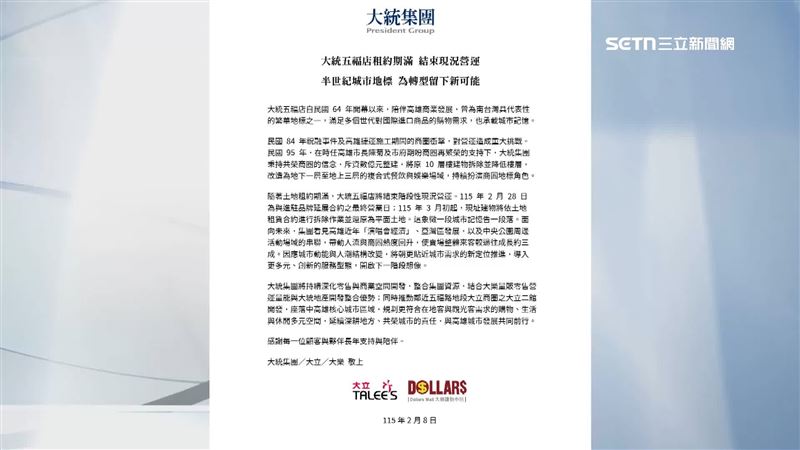 換算時間,過完農曆春節之後,大統百貨五福店就要說掰掰。