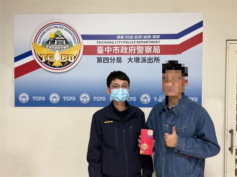 日前有名男子行經南屯區大墩南路附近時,在地上發現一個印有「參獎」字樣的紅包袋,打開紅包袋後,發現裡面竟裝1萬2000元現金,拾金不昧緊急送至派出所。員警獲報後聯想到當時正值尾牙旺季,研判失主極可能是到附近參加公司尾牙或聚餐的民眾,且拾獲地點鄰近婚宴會館及多家餐廳。