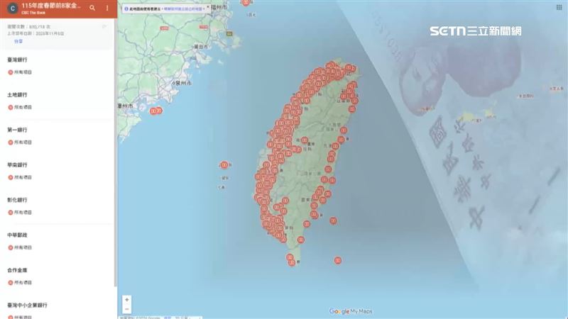 看準民眾諧音搭配色,錦上添花,央行推出Google換新鈔地圖,提供民眾一鍵查詢換鈔據點。