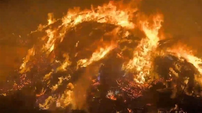 台灣新聞通訊社-鹿港清潔隊陷火海!家具堆如山全燒毀、挖土機「山貓」剩骨架畫面曝